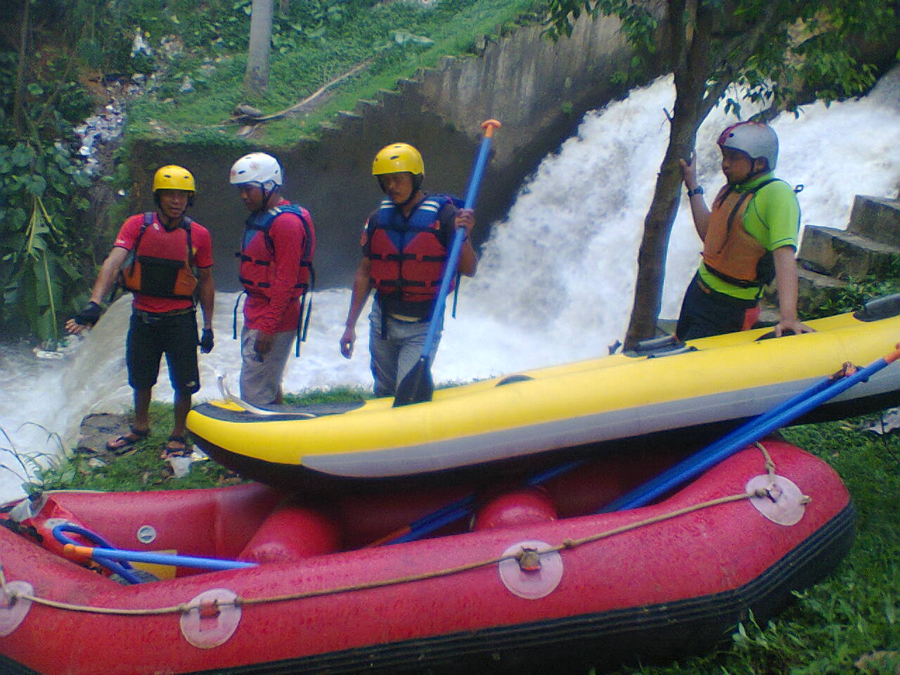 Dilengkapi dengan tali-tali pegangan yang diikat baik-baik keliling pelampung.